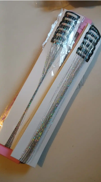 Extensiones de pelo con brillo y clip. 6Pcs